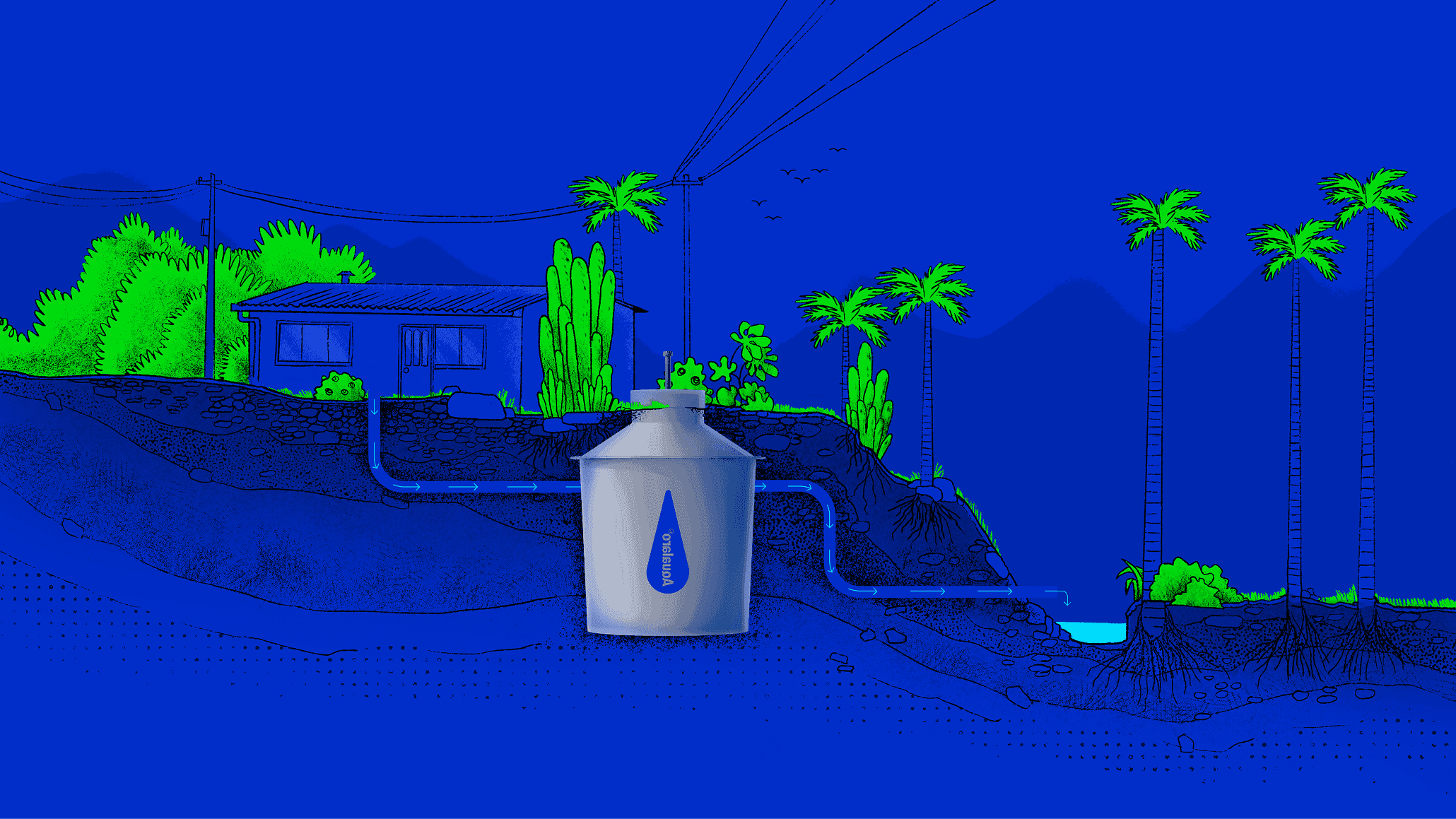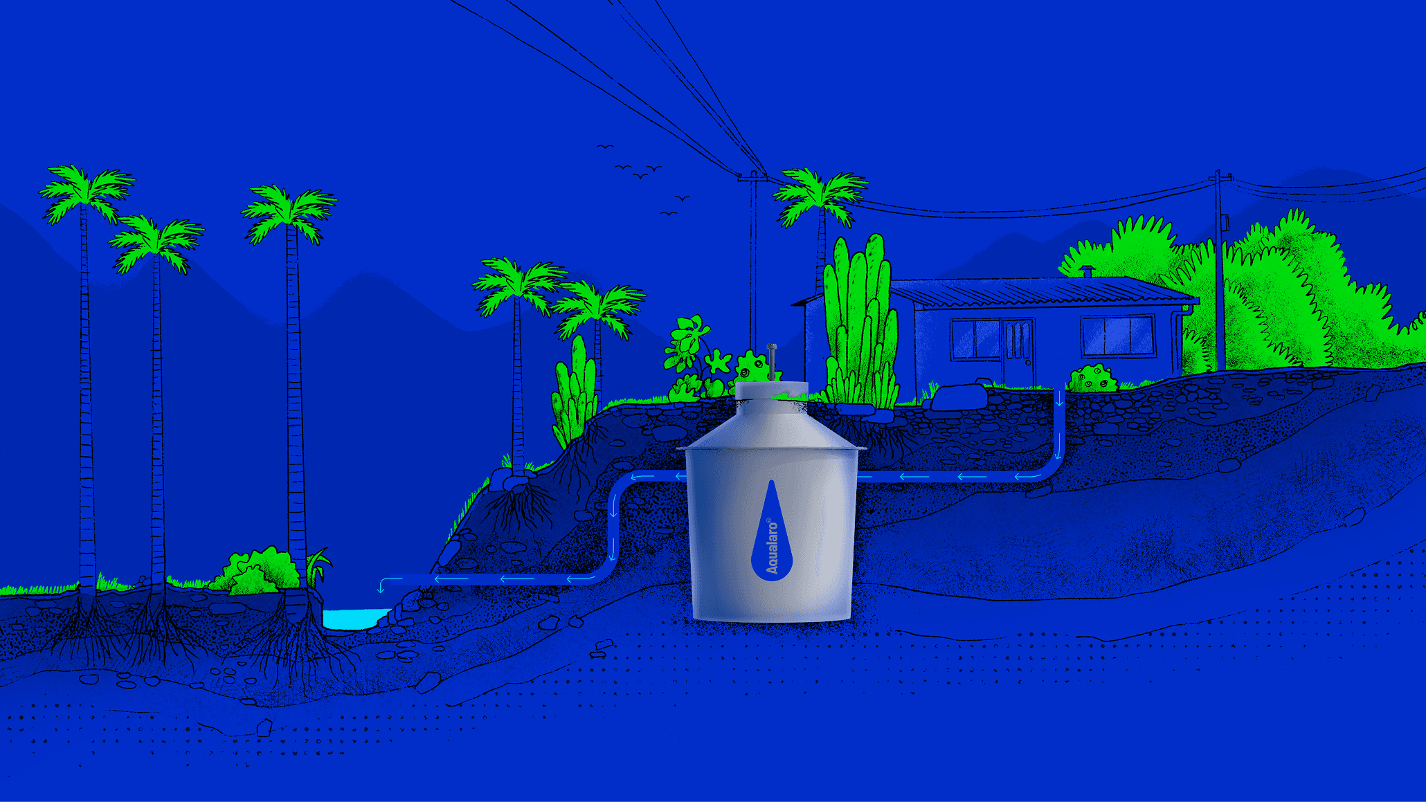Aqualaro produces and delivers premium residential wastewater treatment plants that transform the dirty sewage water into chemical-free water that’s nature ready.